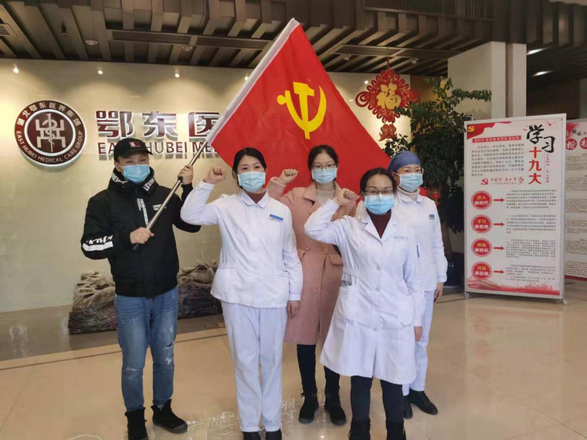 “隨時聽候命令趕赴一線,加入抗擊疫情戰斗中,不講條件全力以赴。”同時,鄂東醫養集團直屬市二醫院、四醫院、五醫院全面啟動發熱門診、感染病區,迅速啟動疫情防控應急方案,全力收治患者,截止到2月4日24時(從1月21日起),二、四、五醫院累計接診發熱患者1151人。1月30日,按照市疫情防控工作指揮部要求,醫養集團抽調直屬各醫院24名醫護人員,迅速集結,聞令出征,馳援全市確診病例定點收治醫院市中醫醫院(傳染病醫院)團城山院區。2月4日,在鄂東醫養集團增援黃石“小湯山”醫院(黃石中醫醫院)醫療隊臨時黨支部駐地,3位年輕醫護骨干阮麗麗、高佩、黃雅賢,面對黨旗莊嚴宣誓,光榮地成為中共預備黨員。