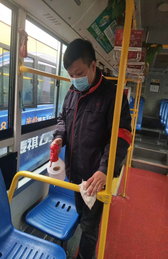公交作為城市交通命脈,公交人在各種危急關頭都會挺身而出。無死角,全面對公交車進行消毒。