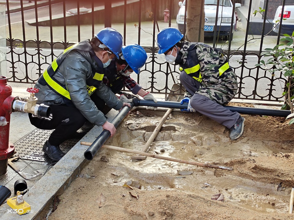 為保障黃石市新型冠狀病毒肺炎疫情防控指揮部將新建臨時食堂正常用水,2月3日,接到通知的當天市自來水有限公司迅速安排客服中心、設計公司以及建設工程公司相關負責人趕赴現場,特事特辦,三個部門現場進行勘測設計、制定方案并迅速組織材料施工,僅5小時便完成外部敷設供水管道96米、安裝閥門2臺,具備了通水條件。不忘初心,特殊時期依舊心系民生。2月1日,黃石公園一名用戶反映無水,公司立即安排經營銷售公司與該物業公司聯系。經了解,是該物業公司管理的一棟樓房高壓區無水。物業公司人員趕到現場查看后,分析可能是二次加壓泵壞了或管道破損漏水,希望得到專業的幫助。市自來水有限公司秉著盡快解決用戶用水問題的宗旨,安排管網維護公司檢測中心協助找到了漏水點并于當天下午及時恢復了供水。