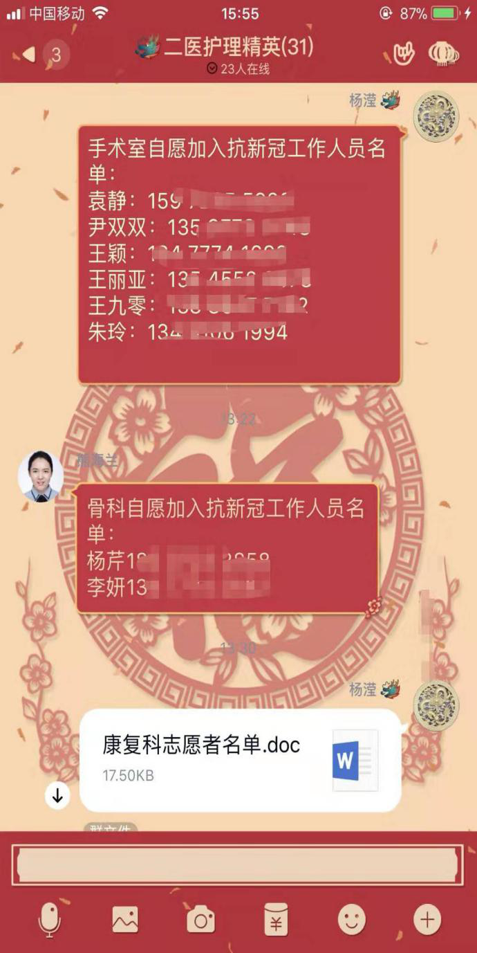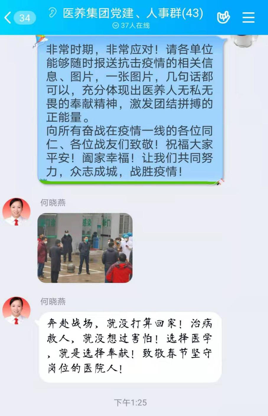 醫養集團工作群里黨員干部職工報名志愿者接龍,