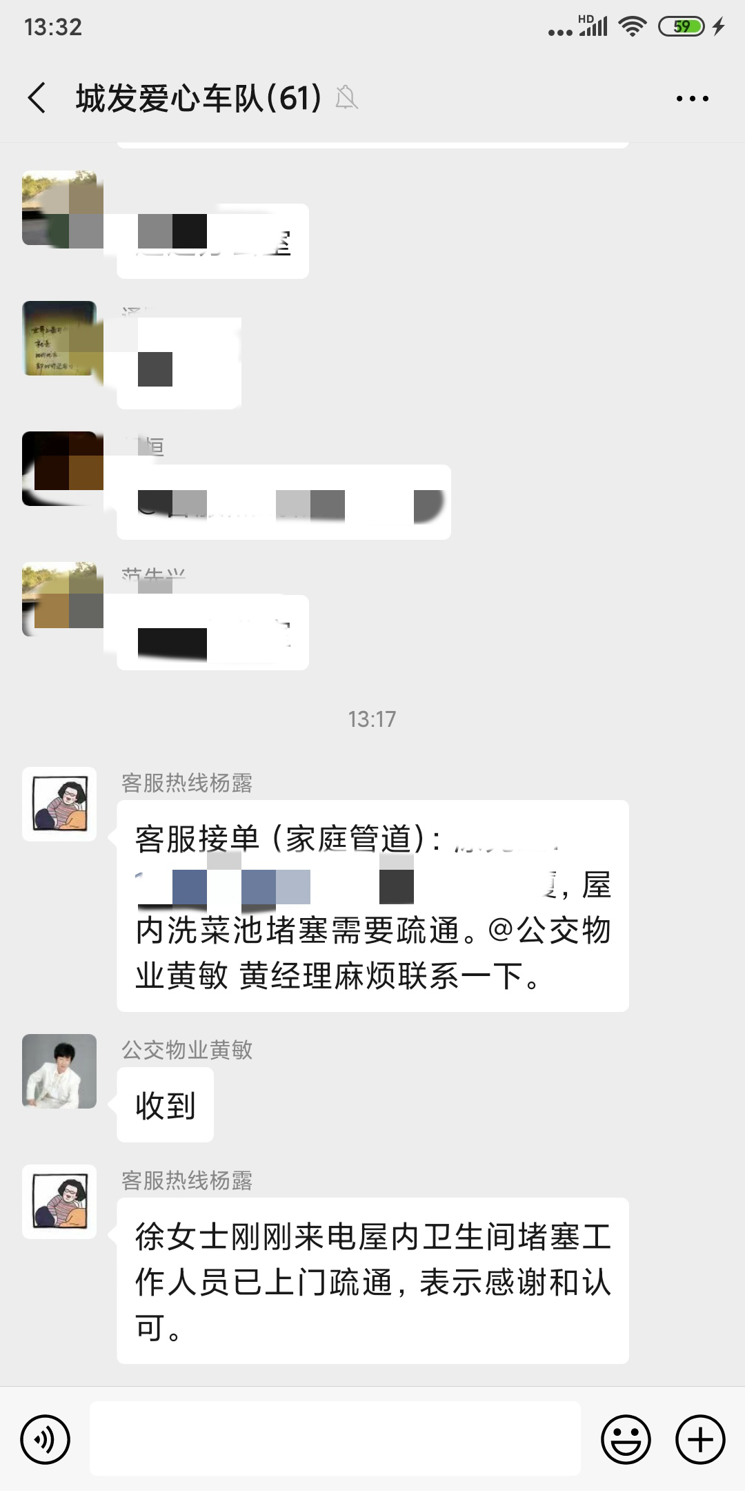 特殊時(shí)期,通成物業(yè)公司義務(wù)為市民疏通管道的場(chǎng)景在不斷上演,“疫情面前,溫暖無處不在,感謝工作人員免費(fèi)提供服務(wù)”“疫情當(dāng)前,服務(wù)隊(duì)免費(fèi)上門疏通管道,為你們點(diǎn)贊!”……類似的短信、表揚(yáng)來電在服務(wù)隊(duì)工作群里比比皆是。