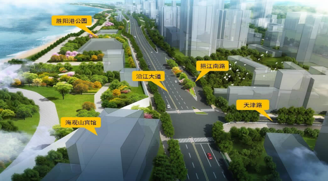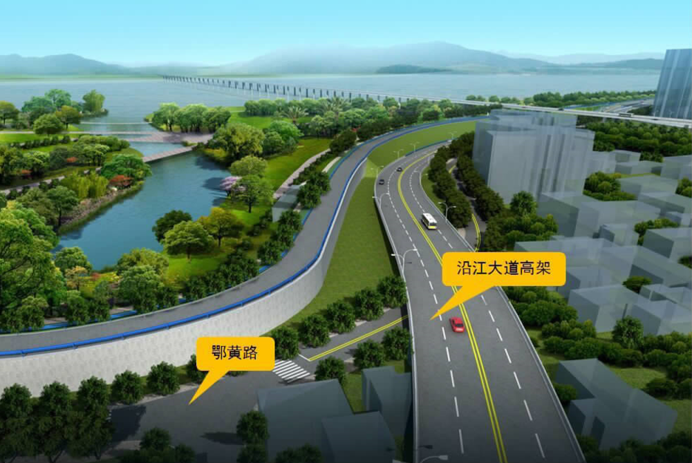 沿江大道全線設計為雙向六車道,按城市快速路標準進行設計,這樣城區的交通壓力將會得到極大緩解,沿江大道將扮演著一個分擔黃石大道擁堵車流的重要角色。