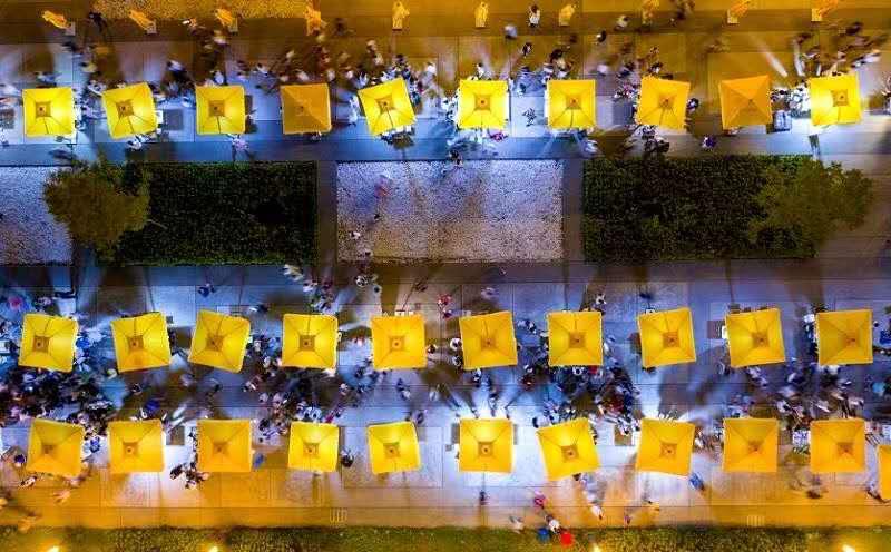 于是就形成了一個有趣的現象,在文創手作區里,道路中間不斷有人流湍急涌動,而觸碰到每朵“小黃傘”時,又自發形成一個個人群包圍圈,如同花瓣般層層盛開。