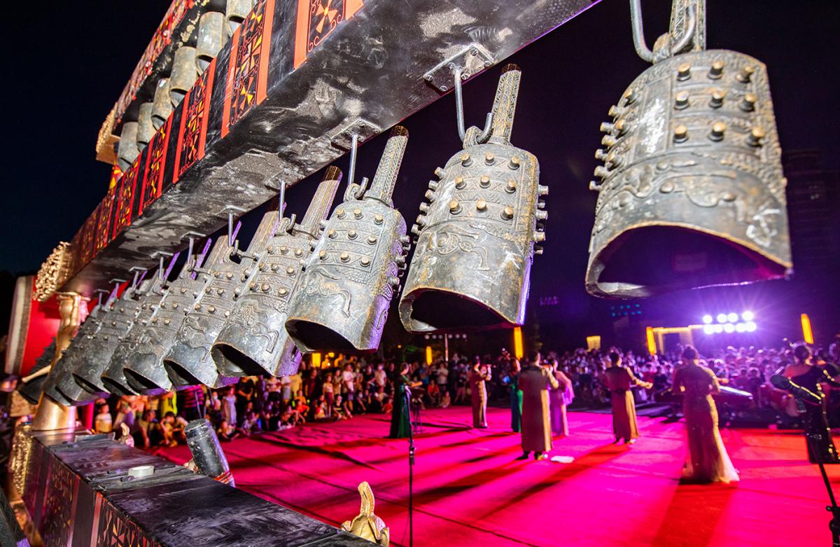 這次文化市集里,最具“重量級”的亮相,還屬“國之重器”曾侯乙編鐘的出現。