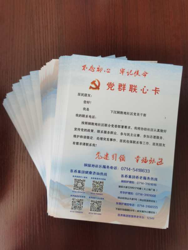 李京鶴表示,此次發放“黨群聯心卡”是下沉黨員干部入戶宣傳的一種有效措施。鄂東醫養集團聯系社區工作隊精心制作的“黨群聯心卡”,靈活解讀下沉社區工作任務,讓居民更深入了解政策,建立起便捷的溝通橋梁,有利于更好發揮網格化管理作用,在居民需要幫助的時候能夠及時聯系到社區下沉黨員干部。同時,結合醫養集團醫療養老資源優勢和社區老年群體較多的特點,將醫養集團各直屬醫院、養老服務機構健康熱線進行了公布,用心用情提升入戶結對成效。