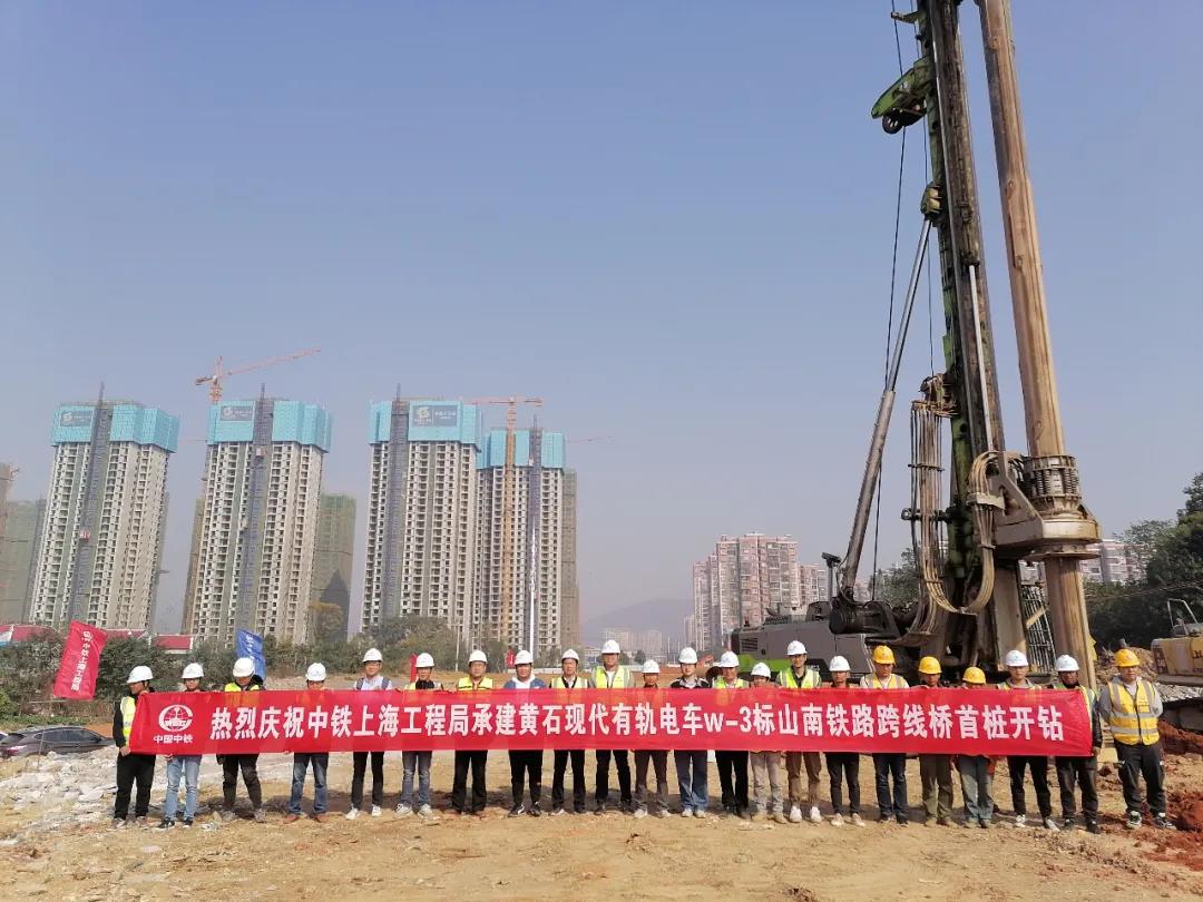 7日上午9時,在開發區·鐵山區百花南路舒家咀路段,已完成平整的土地上,高高的旋挖鉆緩緩鉆向地面,打出山南鐵路跨線橋首根樁基首鉆,這也是黃石現代有軌電車項目建設中首個橋開鉆的第一根樁。