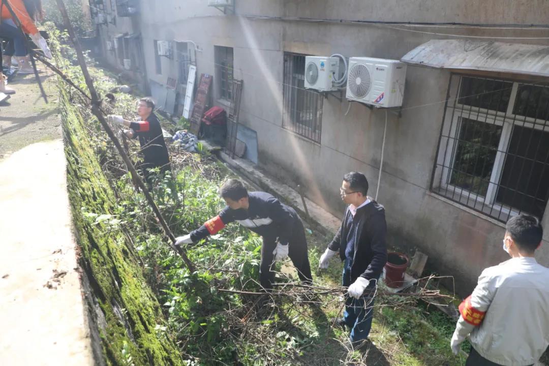此次活動重點整治南岳社區(qū)背街小巷衛(wèi)生死角,大家精神飽滿、干勁十足,一到社區(qū)就迫不及待地帶上手套,扛起鐵鍬,拿起鐮刀,對社區(qū)衛(wèi)生死角進行“地毯式”清理。依山而建的住房后巷是難點區(qū)域,潘憲章同志帶頭爬梯到擋土坡下進行清理。三米多高的距離、狹窄的走道,坡下堆放的建筑垃圾、丟棄的雜物、叢生的雜草以及排水溝垃圾等只能依靠人工清運。大家不怕臟、不怕苦、不怕累,經過一上午的齊心協(xié)力,共清理衛(wèi)生死角400余平方,清理垃圾雜物5車,有效解決了影響社區(qū)環(huán)境衛(wèi)生的突出問題,為居民群眾營造了一個干凈有序整潔的居住環(huán)境。