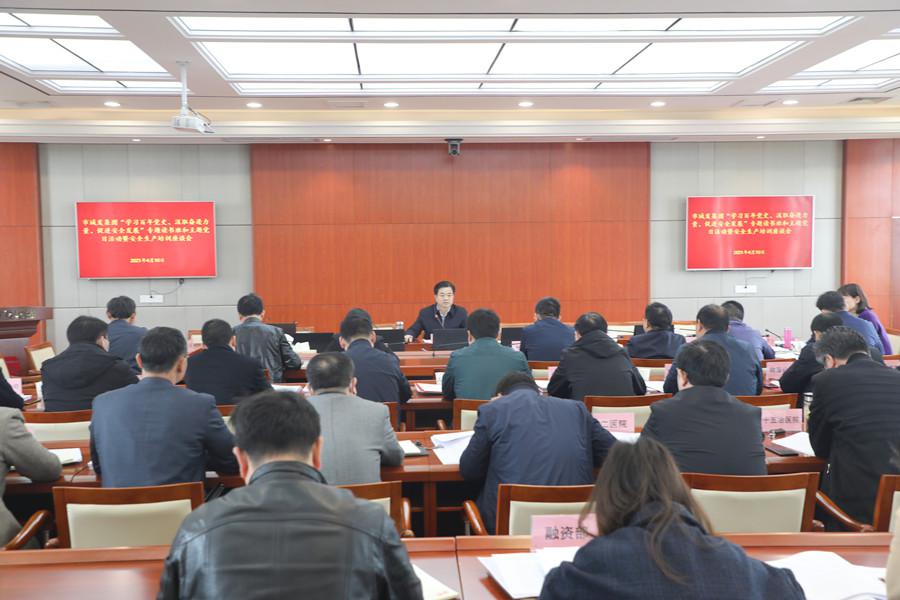 2021年4月10日上午,城發集團“學習百年黨史、汲取奮進力量、促進安全發展”專題讀書班和主題黨日活動暨安全生產培訓座談會在五樓會議室舉行,集團領導班子、直屬二級單位及部分三級單位負責人、機關支部全體黨員參加會議。