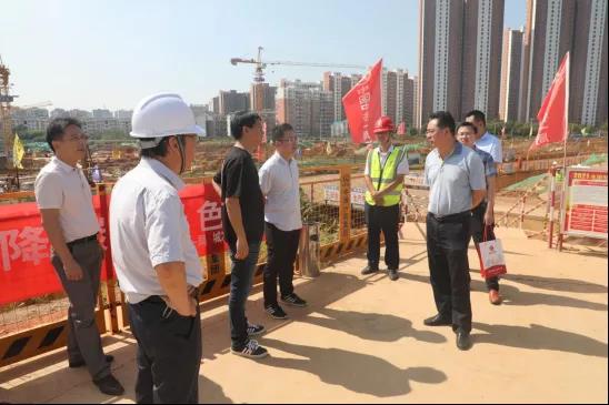 國慶當天,在舉國上下慶祝祖國母親72歲華誕,人們都沉浸在熱鬧祥和的節日氣氛中時,市城發集團總經理程正棟、副總經理胡振宇、石蘭田、石漢松等一行,赴集團在建工地項目現場,慰問奮戰在施工一線的建設者們,為大家送上關懷和祝福。
