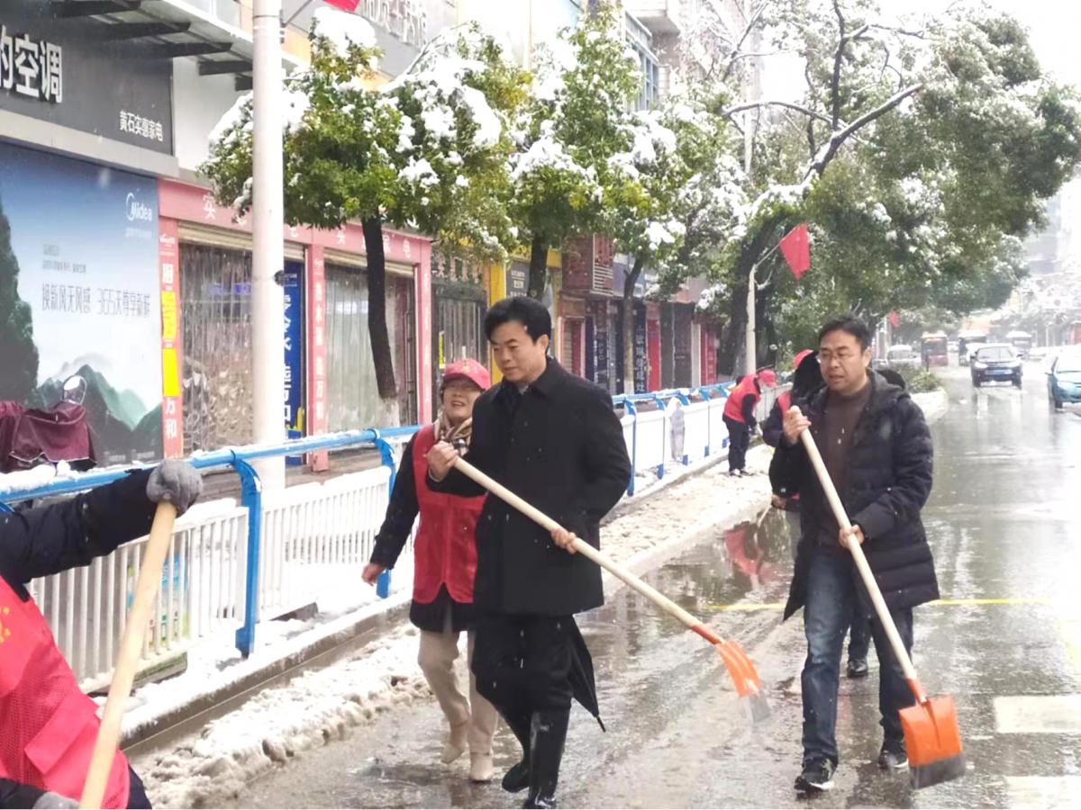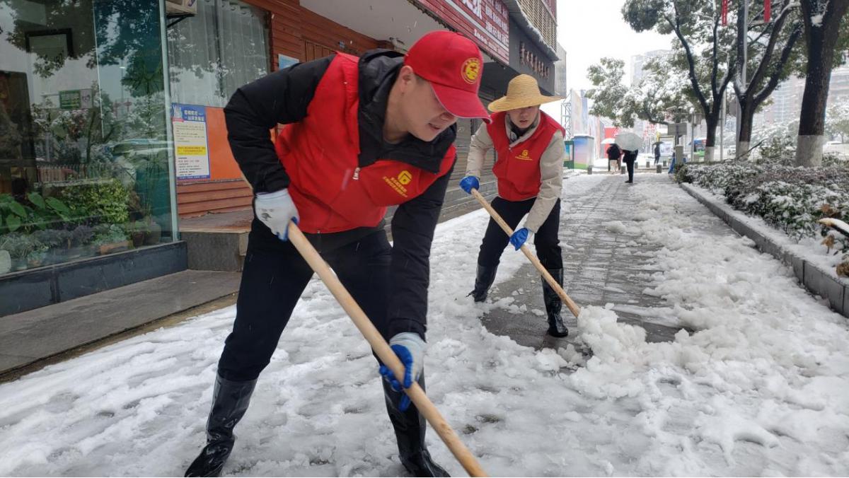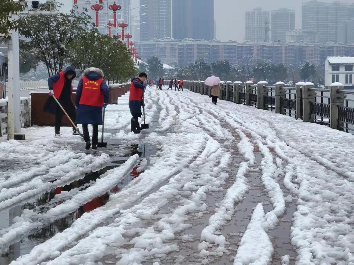 當天上午,城發集團抽調機關、自來水公司、環投公司、更新集團、建工集團等志愿者力量,組建掃雪除冰突擊隊,前往包保社區和路段開展掃雪除冰工作,累計出動120余人次,完成路面積雪清掃工作,同時鄂東醫養集團機關后勤職工自發組成“除雪志愿隊”對醫院道路進行清掃,確保社區居民和行人出行道路安全。