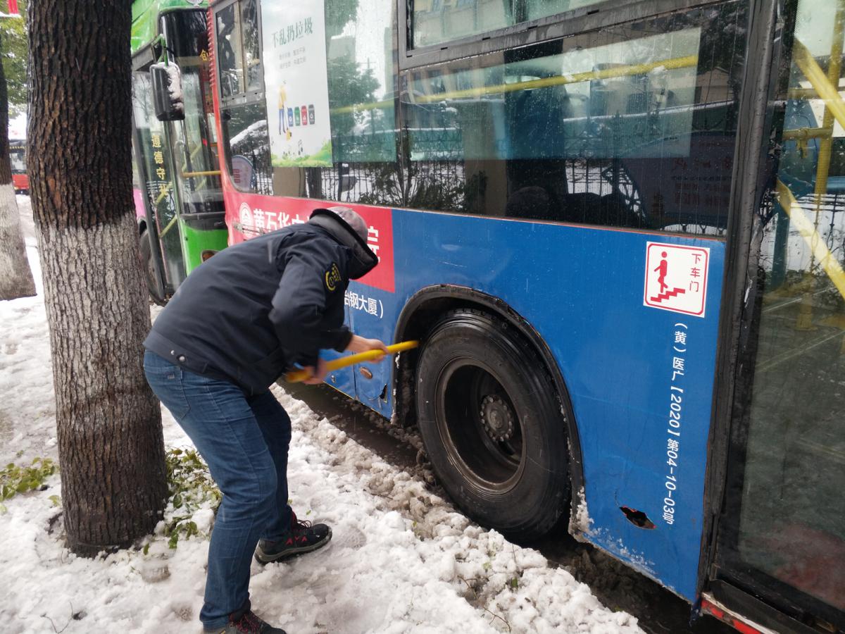 為了保障虎年首個工作日出行,公交集團立即啟動冰雪惡劣天氣應急預案,對2路、9路等10余條線路進行臨時調整,確保行車安全。各運營公司對各車輛進行發車前安全狀況排查,確保車輛性能完好,現場叮囑駕駛員減速慢行,注意行車安全。同時組織60余人在城區主要公交站點鋪草墊、鏟雪及清理掉落樹枝,現場疏導車輛安全進出站,提醒駕駛員減速慢行,引導乘客安全候車、乘車,幫扶行動不便的市民乘車,全力保證車輛的安全運營。