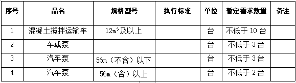運輸數(shù)量:預拌混凝土暫估為年產(chǎn)40萬m3;自有設備:自中標之日起至2023年1月30日前必須在商砼分公司安排10臺以上符合國家標準GB/T26408-2020《混凝土攪拌運輸車》、適應政府限載、環(huán)保、安全要求的12方及以上混凝土攪拌車和2臺天泵24小時駐站承運混凝土,之后的運載能力應滿足生產(chǎn)運輸需要。投標人必須提供車輛登記證書以證明車輛所有權(quán)歸投標人或投標關(guān)聯(lián)人,投標關(guān)聯(lián)人需提供授權(quán)委托書。