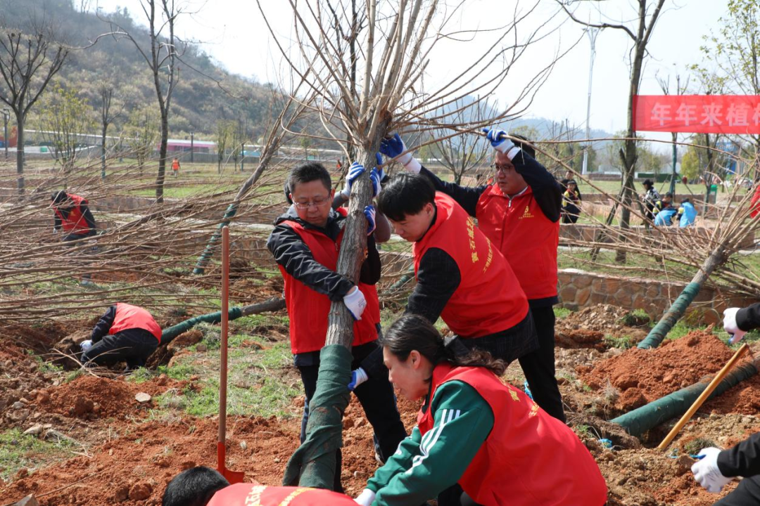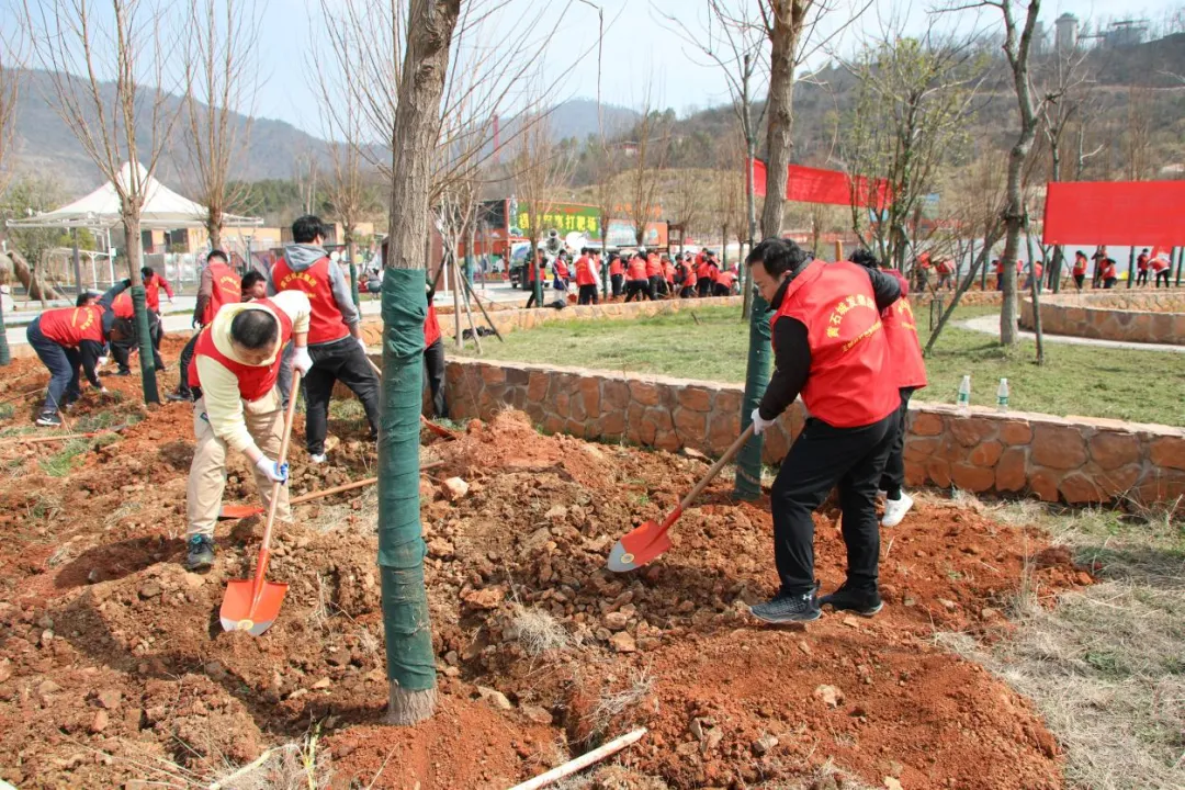 在公園“1890礦樂谷”花海植樹區(qū)域,集團(tuán)領(lǐng)導(dǎo)班子成員帶頭認(rèn)領(lǐng)樹苗,干部職工自由組隊(duì),扶樹、培土、壓實(shí)、澆水,配合默契。植樹現(xiàn)場,所有參加活動人員,三五一組,熱情高漲、干勁十足,現(xiàn)場一片繁忙。一個小時后,“1890礦樂谷”花海、越野車場地斜坡和槐花林三個植樹區(qū)域60余棵刺槐樹苗已是挺拔樹立。